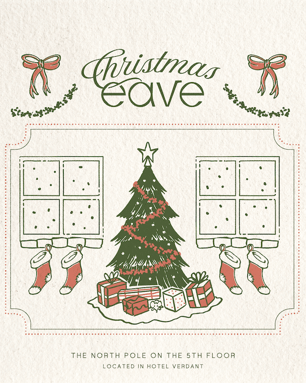 Starting December 2nd, Eave will transform into a winter wonderland, decked out in Christmas decor from top to bottom. Grab your elves and take the elevator to the North Pole on the 5th floor. Our menu will transform into Mrs. Claus’ specials, offering festive cocktails, savory small bites, gingerbread kits, and a Sleigh Ride Shot Sampler (when you’re feeling extra chilly!) this holiday season.